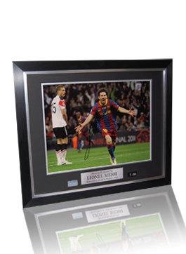 The photo is 16x12 inches in size and comes in a beautiful black Icons frame with a silver plaque. It shows Leo celebrating after scoring the Champions League final goal that secured victory over Manchester United in 2011. It capped yet another fantastic performance by Leo, in a season in which he scored 53 goals in 55 games to lead Barcelona to Champions League and La Liga glory.